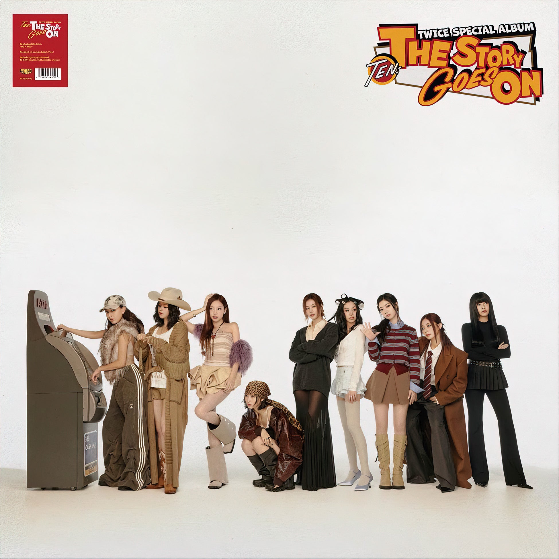 TWICE celebrates their tenth anniversary with TEN: The Story Goes On is now available on vibrant "Lemon Spark" yellow vinyl. The album consists of ten tracks: the lead single "Me+You" and nine solo tracks previously performed on the This Is For World Tour. This Lemon Spark vinyl edition includes a group photocard, 12 x 24" poster, and turntable slipmat, making it a complete collector's package for ONCE. The album debuted at number 11 on the Billboard Top 200 Albums chart, showcasing TWICE's continued global impact.